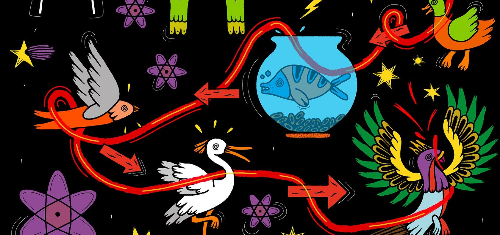 Welcome to the unveiling of this year’s Tchi. Each year, Tchi, our shared energy, finds its expression in art, capturing our collective spirit and aspirations. This year, we are thrilled to showcase the work of the esteemed artist Saša Ostoja, known for his distinctively playful style featuring naïvely drawn animal-like characters navigating humorous, dangerous, or uncomfortable situations.
